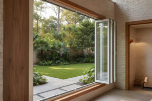 Pada rumah tinggal, kusen pintu lipat UPVC sering digunakan sebagai pintu taman, pintu teras, atau pembatas ruang keluarga dengan area luar. Bukaan lebar membuat rumah terasa lebih lega dan terang.